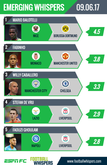 Here are today's top five emerging whispers for the summer. And keep an eye on Transfer Talk for all the latest gossip.